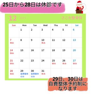 12月30日は、自費での施術のみ予約制で対応させてもらいます。